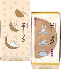 ほのかな甘さが上品な さくっとしたおせんべいにふわっと軽いクリームをはさんだ、昔ながらの半月です。