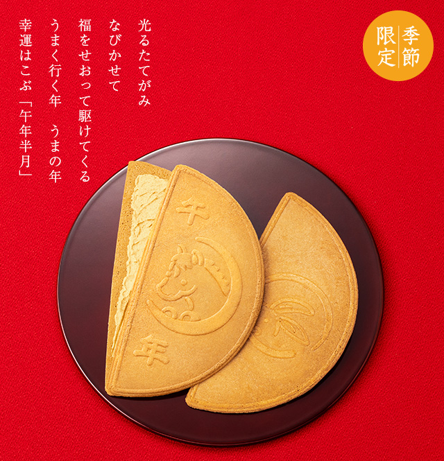 ほっくり栗とお芋が香るクリームを香ばしい半月生地でサンド。新春限定のおめでたいお味です。